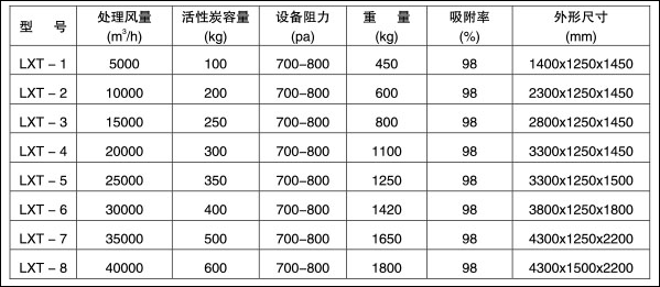 LXT型廢氣活性炭凈化器可以改變內(nèi)部的填充物從而達(dá)到處理不同種類的廢氣。例如廢氣苯類、酚類、醇類、醚類、酊類等。濃度低于1000mg/m3的廢氣經(jīng)過凈化器處理之后均能達(dá)到GB16297-1996《大氣污染物綜合排放標(biāo)準(zhǔn)》的要求。