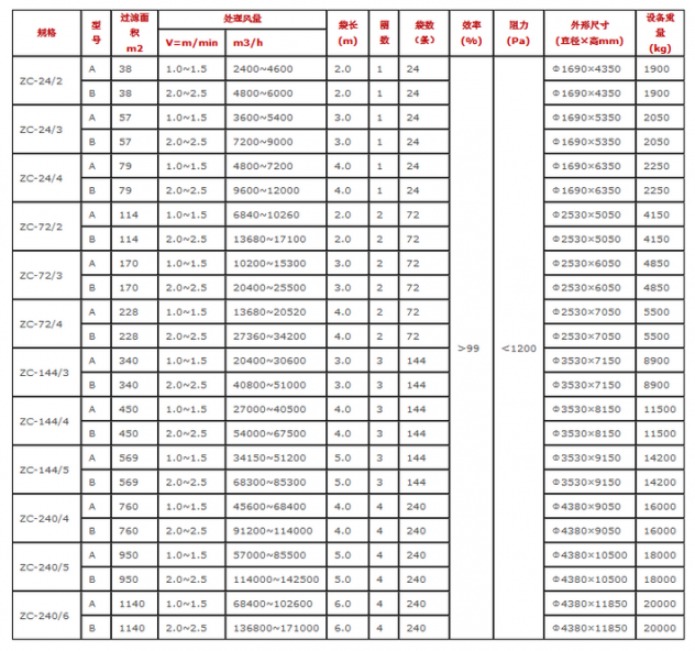 ZC-Ⅱ型機械回轉反吹扁布袋除塵器的型號參數: